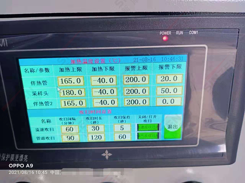 這個是設備伴熱管、采樣探頭溫度及吹掃時間的設置