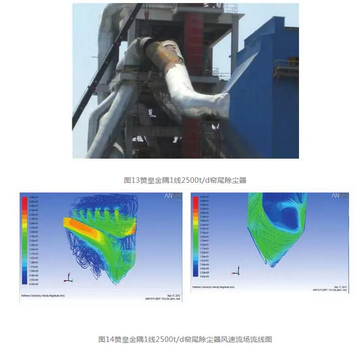 研發平臺應用于產品設計的同時,還應用于生產,快速解決了很多除塵器及系統的實際問題。袋除塵器運行早期出現破袋問題。破袋原因很多很復雜,有結構設計不合理問題,也有除塵器前后工藝接入的進出風管路不合理問題。利用該平臺,我們解決了許多早期破袋問題。例如,2009年金隅集團收購贊皇水泥一條未建設完成的2500t/d水泥生產線后,直接委托我們將窯尾電除塵器改為袋除塵器,我們按常規在短期內進行了改造。生產線剛開始投入運行時效果良好,但約3個月后出現排放超標。我們檢查發現,有3條破袋產生,且集中在后部一個室內,我們僅進行了封堵處理。