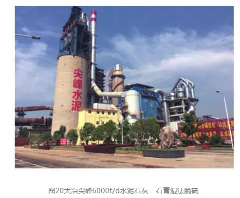 我們近期完成投運了多項水泥窯石灰—石膏濕法脫硫技改工程,如大冶尖峰水泥(見圖20)、馬來西亞馬口水泥、中材云浮、亨達水泥廠等,完全實現了SO2超低排放,其中尖峰水泥在初始SO2含量2500mg/m3(標)情況下,出口SO2含量<35mg/m3(標)(塵含量<10mg/m3(標)),充分說明了水泥窯石灰—石膏濕法脫硫是實現超低排放的理想措施。
